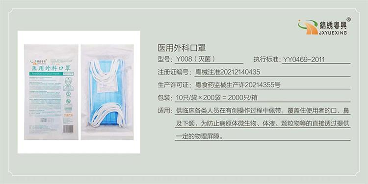 型號:Y008醫用外科口罩2000裝(滅菌) 執行標準:YY0469-2011